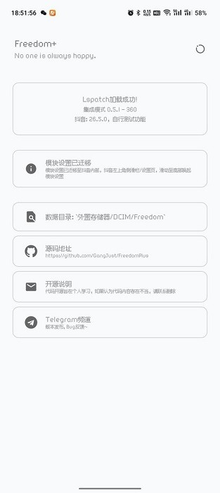 基于xposed框架:作为一款专业的xposed插件,freedom抖音需要用户设备已安装xposed框架才能正常运行,确保功能稳定可靠。