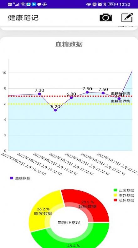 除了自动同步设备数据外,应用支持通过手机摄像头智能识别检测试纸结果,准确记录尿酸、血糖等关键指标。对于特殊检测项目,您可以通过详细表单手动输入各项参数,系统会智能计算相关指标并给出专业解读。所有数据都会加密存储,确保隐私安全。