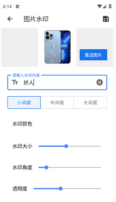 从相册中选择需要添加水印的图片,输入自定义水印文字内容