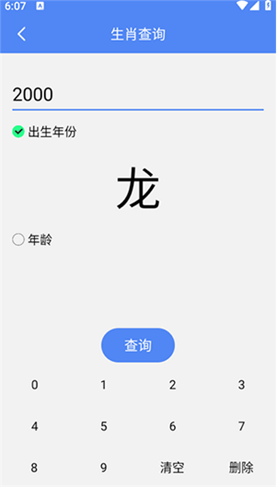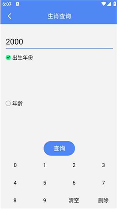 打开软件,点击生肖查询功能进入操作界面