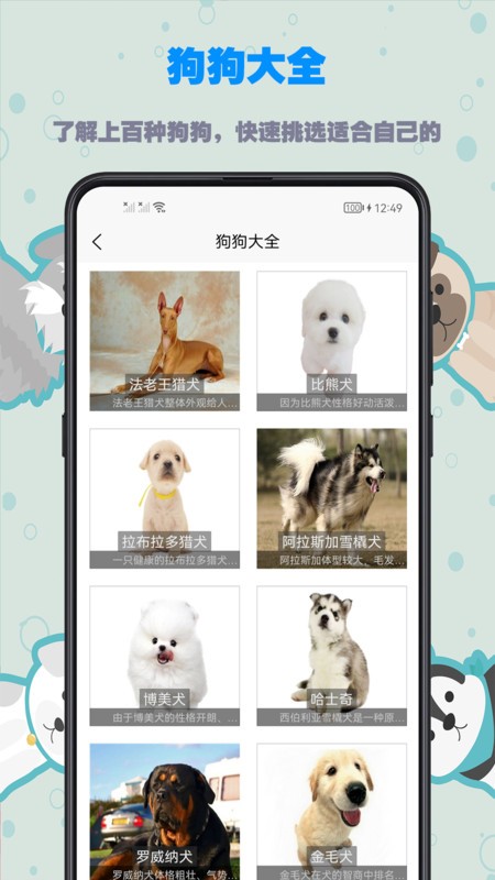 可以帮助您只需要2、3个小时,就能掌握狗狗训练的核心要点。狗狗训练,一个app足够。采用碎片化学习模式,每节课控制在15分钟内,特别适合现代人快节奏生活。另外还包含上百种狗狗品种。狗狗大全,包括品种介绍、产地、性格、喂养、寿命、价格等信息。数据库持续更新全球犬种标准,配有3D模型展示各品种特征差异。一个专为养狗人士学习训练狗狗的app,为您系统而简洁介绍狗狗训练的各种实用知识(包括:刚进家训练、服从性训练、运动训练、进食训练、排便训练、外出训练、恶习纠正训练、小把戏训练)。课程按难度分级,配有训练进度追踪和成果测评功能,让训练效果可视化。