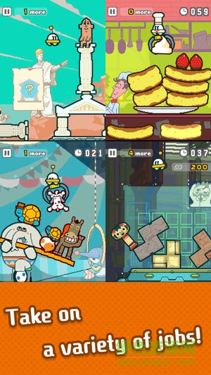 "UFO找工作"是一款创意十足的机器爪动作游戏,玩家将操控一个漂浮在空中的UFO,使用它引以为傲的"机器爪"来完成各式各样的工作挑战。游戏场景丰富多变,从农场搬运货物到为啦啦队提供支援,从制作精美甜点到修建梦幻城堡,每个场景都充满了独特的乐趣。UFO所到之处都会遇到不同的工作挑战,玩家需要灵活操作机器爪来完成抓取、搬运和堆放等任务,体验不同职业的独特魅力。