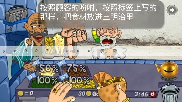 游戏内包含了上百种不同的食材和配料组合,让玩家可以充分发挥创意,制作出独一无二的三明治。游戏特别注重顾客体验,每位顾客都有自己独特的口味偏好,玩家需要仔细观察并满足他们的需求。游戏虽然原生不支持中文,但提供了完整的中文界面和详细的操作说明,确保中文玩家也能轻松上手。游戏操作简单直观,采用触屏控制方式,让玩家能够快速掌握制作流程。画面风格清新可爱,人物造型Q萌有趣,配乐轻松愉悦,为玩家营造出一个温馨有趣的经营环境。游戏还设有成就系统,玩家可以通过完成特定目标来获得奖励,增加了游戏的挑战性和可玩性。