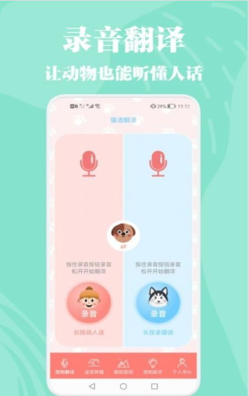 猫狗动物交流器是一款专为宠物爱好者设计的安卓应用,致力于搭建人类与宠物之间的沟通桥梁。通过创新的语音识别技术和丰富的互动功能,这款软件让您能够轻松解读爱宠的情绪和需求,无论是猫咪的慵懒叫声还是狗狗的兴奋吠叫,都能转化为清晰易懂的语言。简洁直观的界面设计让操作变得简单流畅,即使是新手也能快速掌握。无论您是想了解宠物的心情,还是希望增加日常互动的趣味性,猫狗动物交流器都能为您提供贴心而高效的解决方案,让您与爱宠的关系更加亲密无间。