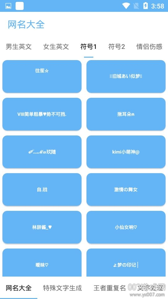 特殊符号一键生成可复制版是一款专为用户设计的创意工具,能够快速生成各种独特的符号组合和个性化名称。这款软件操作简单便捷,只需轻轻一点,就能创造出充满个性的符号名字,并支持直接复制使用。无论是社交平台昵称、游戏ID还是特殊文本装饰,都能满足您的需求。软件界面清爽直观,功能强大且实用,让您的文字表达更具特色和吸引力。