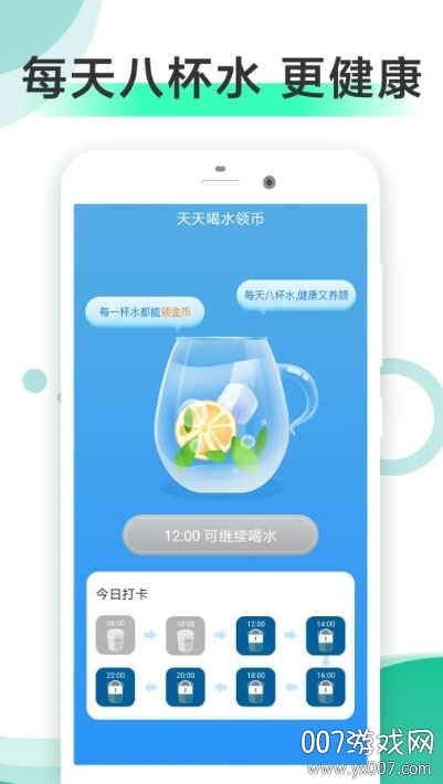 【喝水打卡】每天8杯水,健康好生活。每日喝水打卡提醒,再忙也不会忘记补充水分,系统会根据您的体重和活动量智能调整推荐饮水量。