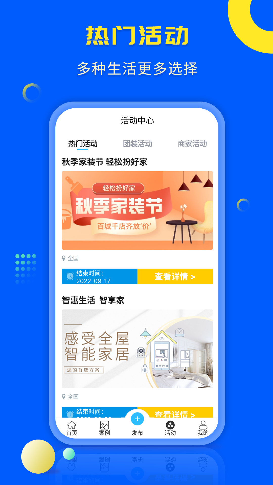 实现在线预约装修服务、提供免费量房、设计、报价等上门装修服务。简化传统装修流程,用户只需一键下单即可享受全流程服务。为业主提供一站式家居装修服务,为同城品质口碑装企及个人提供良好的品牌展示、公司排名、活动获客等多渠道功能服务。平台建立了严格的商家准入机制,确保服务质量。致力于帮助装企、及个人设计师、工长、建材商家转型电子,为其提供高效、高性价比的线上营销服务,提供更高效,更和谐的交流平台,实现多方共赢。创新性地推出供应链金融服务,解决装修资金周转难题。