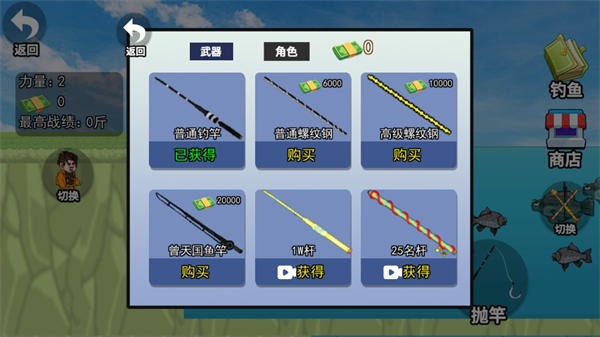 游戏提供了丰富的秘籍系统,玩家可以通过购买不同秘籍来解锁特殊的钓鱼技巧,每种秘籍都能带来全新的钓鱼体验。