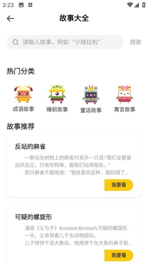 四月天阅读采用先进的智能推荐算法,能够根据用户的阅读历史和偏好,精准推送符合个人兴趣的内容。这种个性化推荐机制大大提升了用户的阅读体验,让每个人都能发现最适合自己的读物。软件在各个板块都设置了便捷的搜索功能,用户只需输入关键词就能快速找到想要阅读的文章或故事。特别是在故事大全板块,软件进行了细致的分类整理,包括成语故事、睡前故事、童话故事、寓言故事等多个热门类别,方便用户快速定位所需内容。