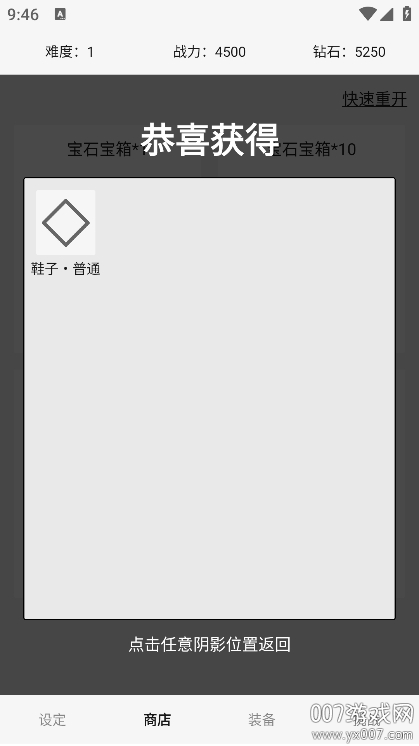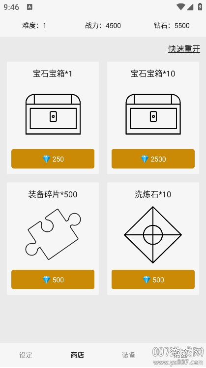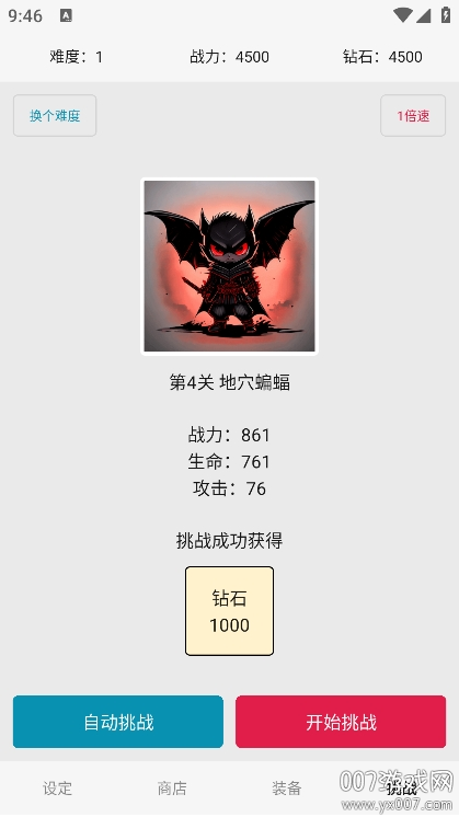 游戏的操作流程非常简单直观:首先打开游戏页面点击开始新游戏进入游戏世界,接着玩家可以根据个人喜好对玩法进行选择。游戏提供了丰富的自定义选项,玩家可以根据需求进行难度和内容的设定。完成设定后点击开始游戏按钮即可进入游戏。在游戏过程中,玩家可以点击商店进行各种宝石的购买,这些宝石可以用来强化角色能力。在装备页面中,玩家还可以对角色的各种装备进行升级和调整。当准备就绪后,点击挑战按钮即可自动进入战斗场景。进入战斗页面后,角色会自动进行攻击,玩家需要根据战况适时调整策略。成功完成挑战后,玩家可以领取相应的奖励,这些奖励可以用来解锁更多游戏内容。