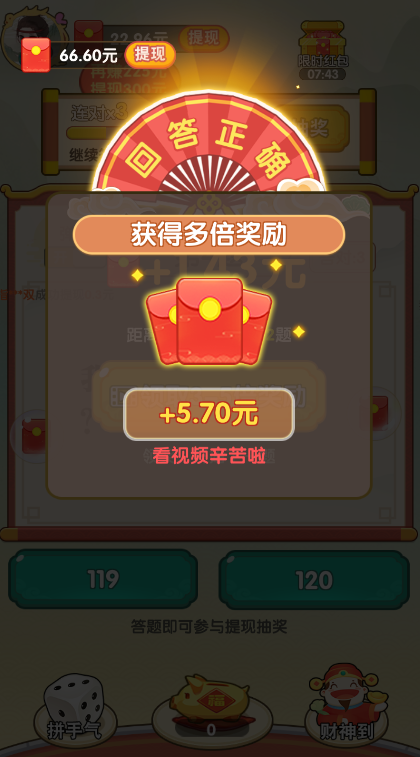 《用头脑赚钱》是一款创新性的知识变现游戏,将益智问答与红包奖励巧妙结合。游戏采用阶梯式难度设计,从生活常识到专业知识应有尽有,满足不同层次玩家的需求。每次成功答题都能获得相应红包奖励,累计到一定金额就能直接提现。系统还会根据玩家答题表现智能推荐题目,让挑战更具针对性。随着等级提升,还能解锁更多趣味玩法,如限时挑战、知识竞赛等,让学习赚钱的过程充满惊喜。