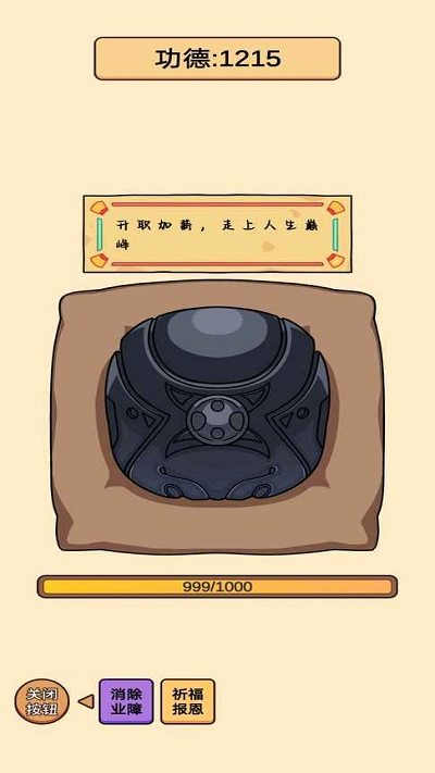 点击主界面右上角的"展开按钮",可以查看当前积累的功德值详情,系统会以图表形式展示功德增减趋势,帮助您了解修行进度。在"消除业障"功能中,您可以输入具体的生活烦恼或负面情绪,系统会生成专属净化音效,完成净化后功德值将显著提升。"报恩祈福"功能支持输入感恩对象和祝福内容,每次祈福都会播放特殊音效并记录在修行日志中。