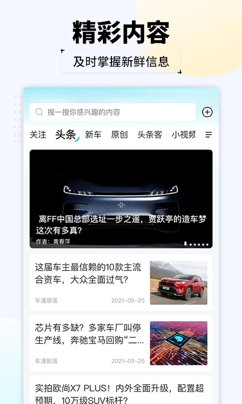 汽车头条的亮点在于其智能化和个性化的服务体验。独创的智能推荐算法,让用户轻松发现感兴趣的内容。