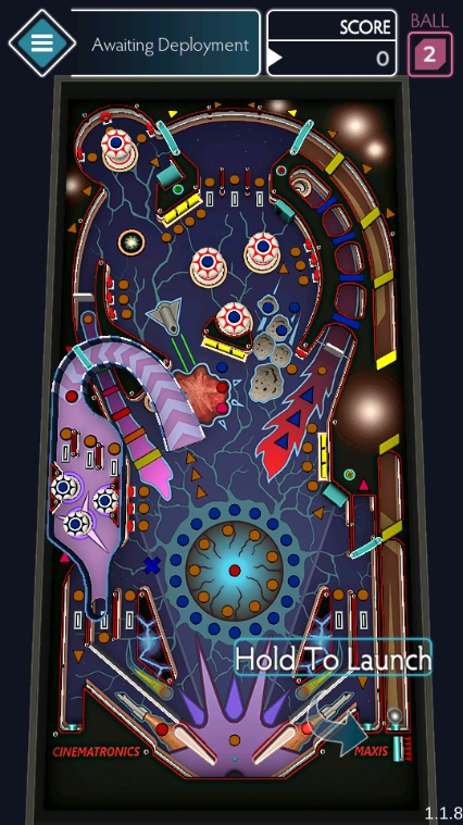 玩家通过控制一个发射装置(通常是一个弹簧加载的发射器),将一个小球(即"弹球")发射到一个充满障碍、目标和反弹面的立体游戏区域中。这个区域通常成类似太空船舱或未来科技实验室的样子,布满了各种可以碰撞的物体,如弹簧、翻转板、漩涡通道、目标灯等。