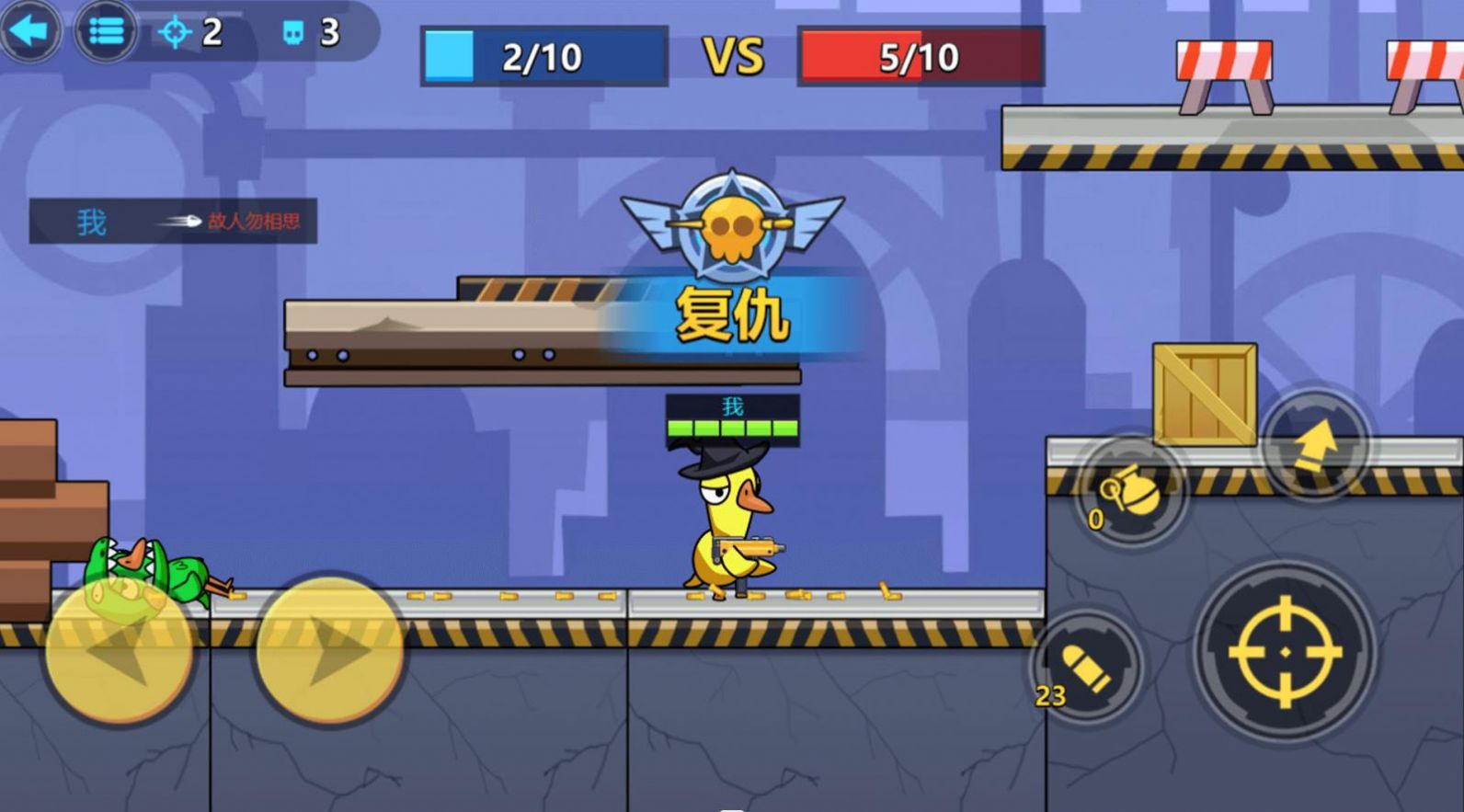 太空狼人鸭是一款结合了射击与策略的趣味游戏,玩家可以选择各种造型独特的鸭子角色参与激烈的太空对决。游戏提供了多样化的地图场景,从神秘的太空站到危机四伏的外星基地,每个场景都带来全新的挑战。玩家需要运用智慧和技巧,寻找最佳射击位置,在激烈的对抗中击败对手。随着游戏进程的推进,更多精彩的地图和玩法将逐步解锁,让你体验不同风格的射击乐趣。游戏还支持多人联机对战,与来自全球的玩家一较高下,展现你的射击实力。