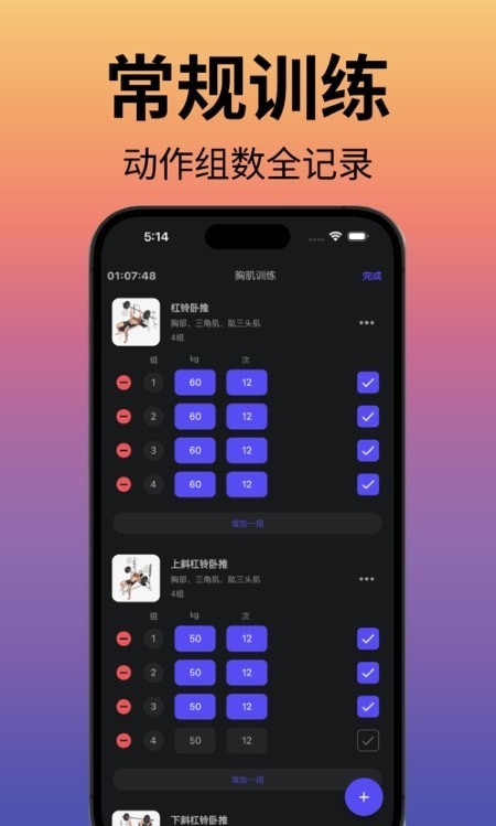 平台清楚的帮你记录自己的运动情况,让你得到正规的锻炼。每次训练的心率、卡路里消耗、完成组数等数据都会被详细记录,形成完整的运动档案。