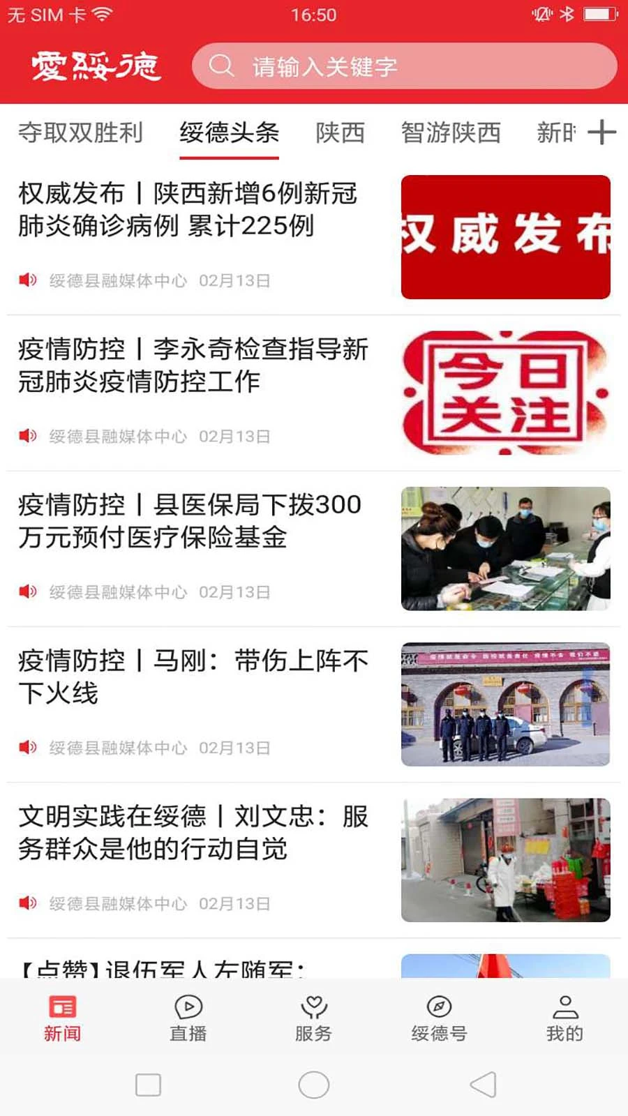 "爱绥德"手机APP作为绥德县融媒体中心主办的"新闻+政务+服务"综合平台,是权威的舆论宣传主阵地。开设了新闻、直播、电视、服务、"绥德号"等栏目,整合了县域内网站、微信、微博、短视频等自媒体和部门、镇(办)、社区、村组政务服务资源。用户可通过客户端,第一时间了解绥德政治、经济、民生、服务等方面的新动态,同时提供各种便民服务,还可参与实时互动,实现"一端在手,尽享智慧"。