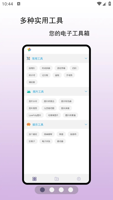 小风车工具盒app是一款功能强大且专业的手机工具集合应用,为用户提供了丰富多样的实用工具,满足日常生活中的各种需求。无论是办公、学习还是娱乐,这款应用都能带来高效便捷的使用体验。平台内所有工具均经过精心筛选和优化,确保用户能够享受到专业级的服务品质。无论您是普通用户还是专业人士,都能在这里找到适合自己的工具,让生活和工作变得更加轻松高效。
