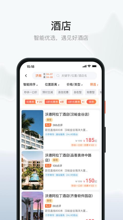 沃德阿拉丁官方版是一款专注于外出酒店预订的智能服务平台,致力于为用户提供多样化、高品质的住宿选择。平台拥有海量酒店资源,覆盖全国各大城市及热门旅游目的地,用户可以根据自身需求灵活筛选房型、价格区间和地理位置,轻松找到最适合的住宿方案。沃德阿拉丁通过创新的技术手段简化了传统酒店入住流程,让用户享受从预订到退房的全流程自助服务体验,真正实现"指尖一点,轻松入住"的便捷理念。