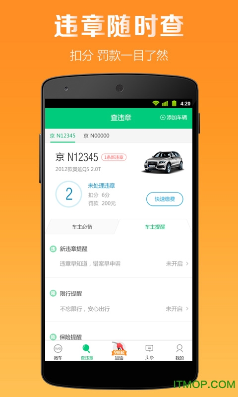 【主动提醒】智能推送系统24小时监控车辆状态,及时提醒违章记录、尾号限行、摇号结果等重要信息。支持自定义提醒设置,确保您不会错过任何关键时间节点,让用车生活更加从容有序。