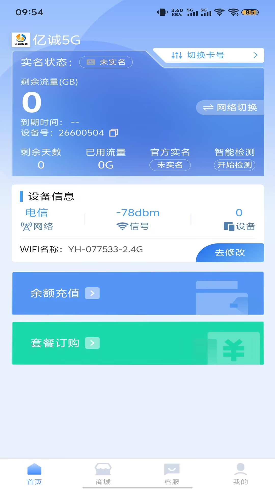亿诚5G具备多项实用功能,包括一键连接、流量监控、设备管理等,帮助用户轻松管理随身WiFi设备。用户可以通过app实时查看流量使用情况,避免超额使用带来的额外费用。此外,亿诚5G还支持多设备同时连接,满足家庭或团队的上网需求。其简洁直观的界面设计,让操作更加便捷,即使是初次使用的用户也能快速上手。