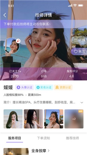 所有技师均经过严格筛选和专业培训,确保为您提供最优质的服务体验,同时支持根据地理位置快速搜索附近店铺。