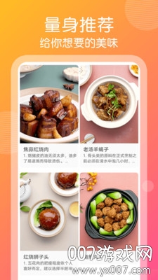 精选常见菜谱专题,美食各种不同做法大全;涵盖从早餐到夜宵的全时段食谱。搜索功能让你快速找到想吃的菜谱;支持模糊搜索和语音搜索多种方式。完美的收藏功能和浏览记录,让你更方便的使用;支持多设备同步,随时随地查看收藏。每一道菜自动推荐相关做法视频;还会根据用户浏览记录智能推荐相似菜谱。