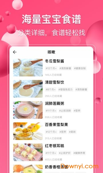 大量小月龄宝宝辅食,还有孕期妈咪和产后妈咪的营养食谱;界面采用温馨的卡通设计,操作流程优化,即使老年人也能轻松上手使用。