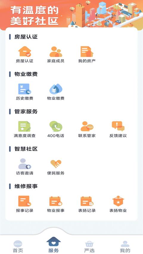 第二步:首页就可正常使用,如图下。主界面采用智能卡片式布局,常用功能如缴费、报修等都放在显眼位置,支持自定义排序。