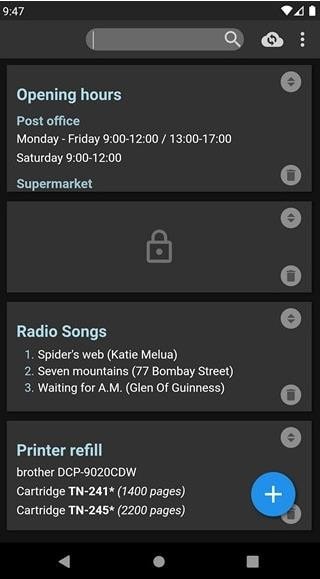 SilentNotes支持做笔记、添加便签、任务管理等多种功能,用户可以随时随地记录和管理自己的待办事项。无论是工作安排、购物清单还是灵感记录,都能轻松搞定。应用内置了所见即所得(WYSIWYG)编辑器,使用户能够轻松创建和编辑笔记,同时支持基本格式化、待办事项列表和全文本搜索等功能。编辑器还支持图片插入和自定义字体大小,让笔记更加生动直观。SilentNotes通过WebDAV、FTP、网盘等方式实现设备间数据同步,确保用户在不同设备间无缝切换。同步过程稳定可靠,且始终保持数据加密状态。应用提供了安全锁功能,用户可以设置密码加密每一个便签,进一步保护隐私。每个便签都可以单独设置不同的密码,实现多层次的安全防护。SilentNotes还支持多主题、自动深色模式等个性化设置,满足不同用户的需求。用户可以根据个人喜好自定义界面风格,打造专属的笔记环境。