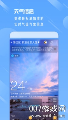 独有的分钟级降水预报功能,让您出行更安心;15天超长天气预报,帮助您提前规划重要活动;24小时温度变化曲线,直观展示冷暖变化;空气质量实时监测,关注呼吸健康;支持多种天气背景切换,带来个性化使用体验;提供台风路径追踪功能,及时掌握台风动态。