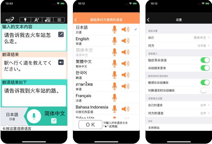 VoiceTra(博译斯妥拉)集成了信息通讯研究机构(NICT)最尖端的语音识别、机器翻译和语音合成技术,不仅能准确识别您的语音,还能用自然流畅的目标语言进行播报。其独特的即时翻译方向切换功能,让单设备双向对话成为可能,极大提升了沟通效率。对于不支持语音输入的语言,贴心的文本输入功能提供了完美的解决方案。应用场景方面,VoiceTra特别优化了旅游相关词汇,在交通、购物、住宿等常见情境中表现尤为出色。值得一提的是,它还被日本政府推荐为防灾应急通讯工具,在紧急情况下能发挥重要作用。