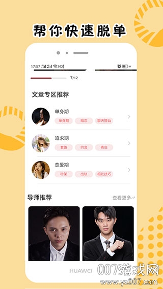 约会技巧,恋爱技巧,卸下单身,恢复爱情奉献。从初次见面到长期关系维护,全方位提升用户的恋爱能力。
