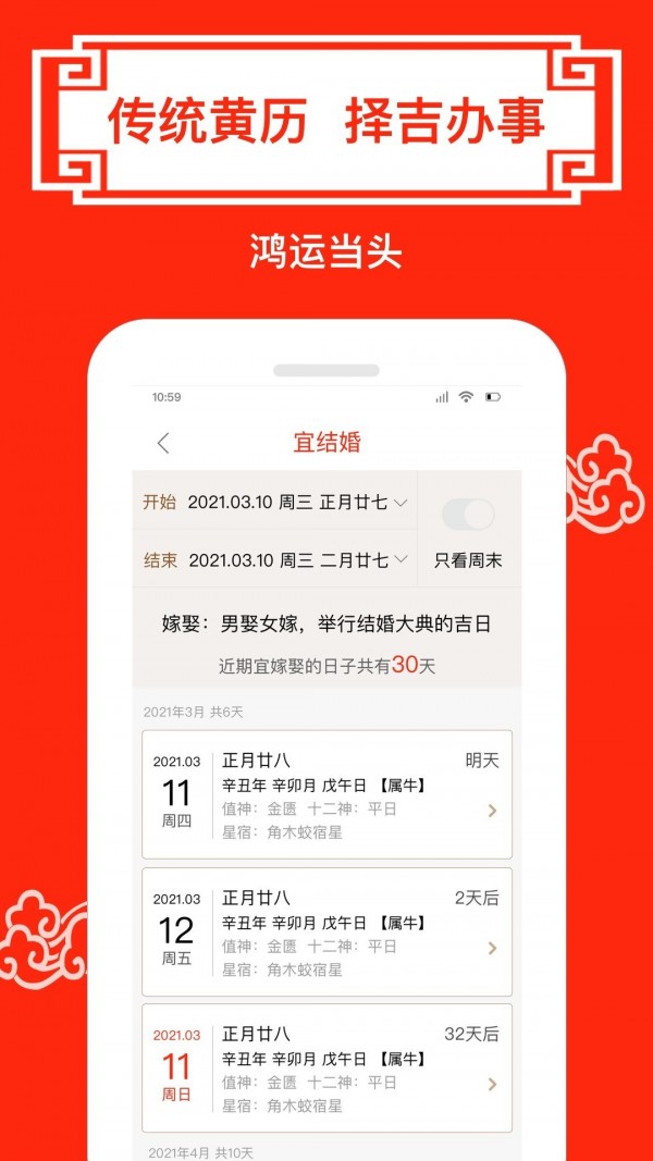 财运日历app拥有丰富多样的吉日查询功能,从婚嫁乔迁到开业动土,各类重要日子的查询应有尽有,满足用户各种场景需求。平台提供多种日历模式自由切换,包括传统农历、现代阳历等不同显示方式,操作界面直观简单,即使是初次使用的用户也能快速上手。此外,app还会实时更新显示中国传统节假日和二十四节气信息,让用户不错过任何一个重要日子。