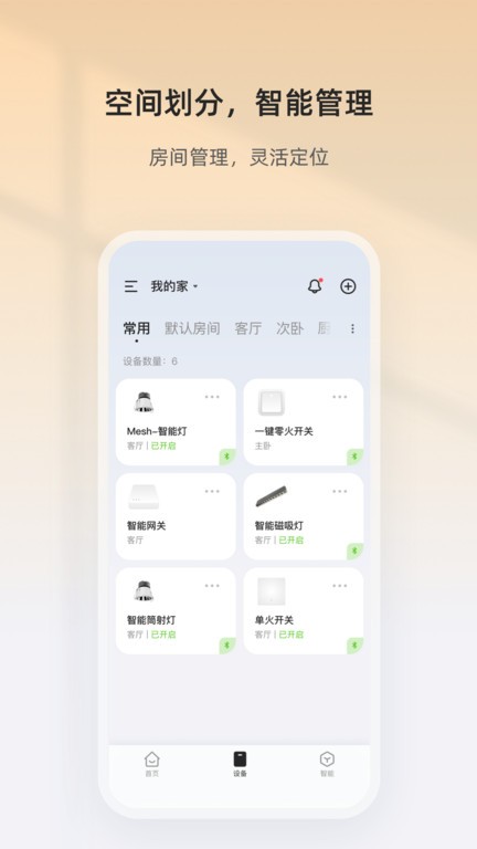 支持按房间区域管理设备,用户可以灵活设置不同空间的智能方案。通过精准定位,实现更智能、更高效的空间管理体验。
