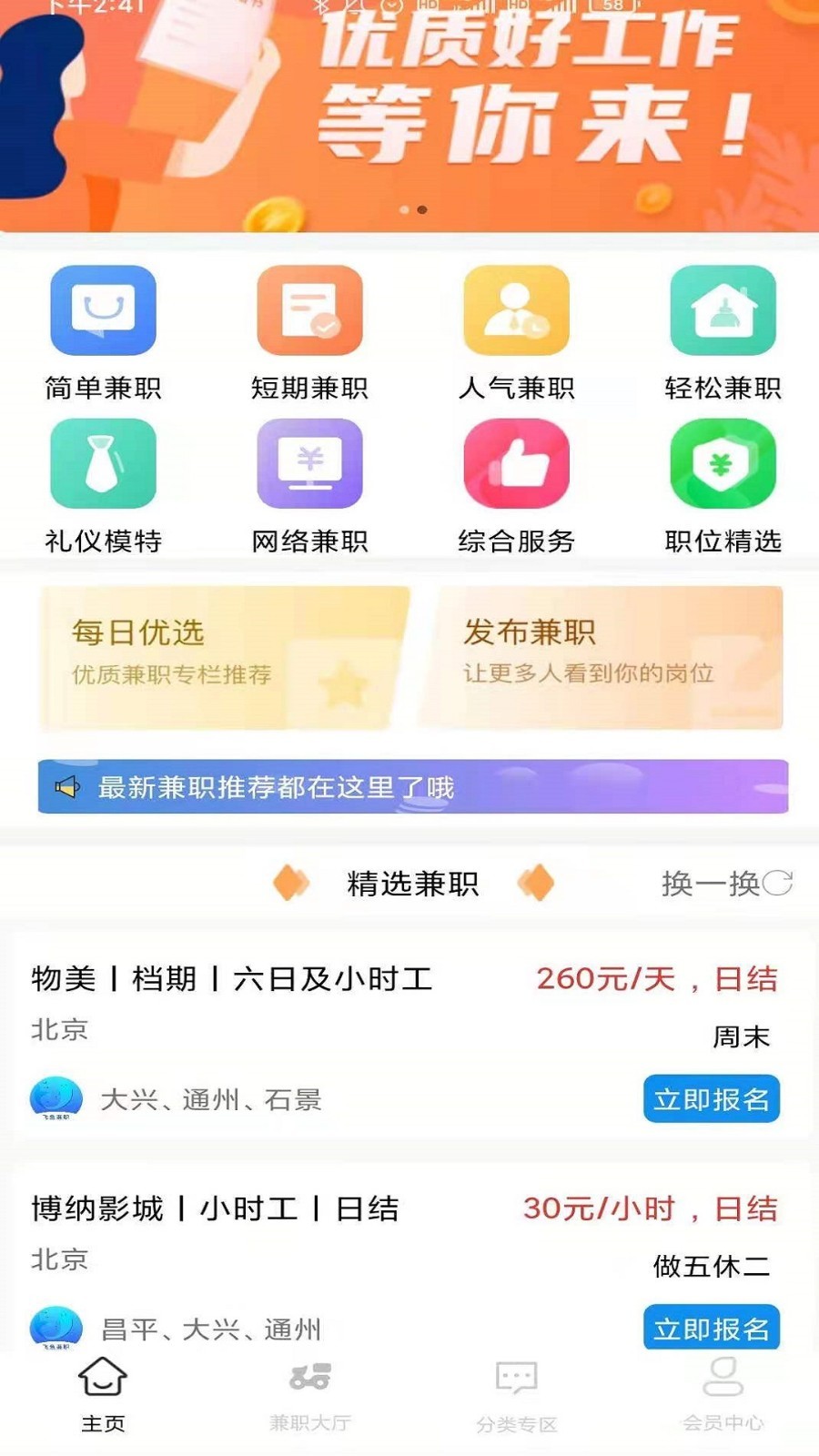 兼职、临时工、实习、在家兼职、包吃包住兼职,丰富岗位应有尽有!特别开设高薪专区、学生专区和宝妈专区,满足不同人群的特殊需求。