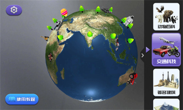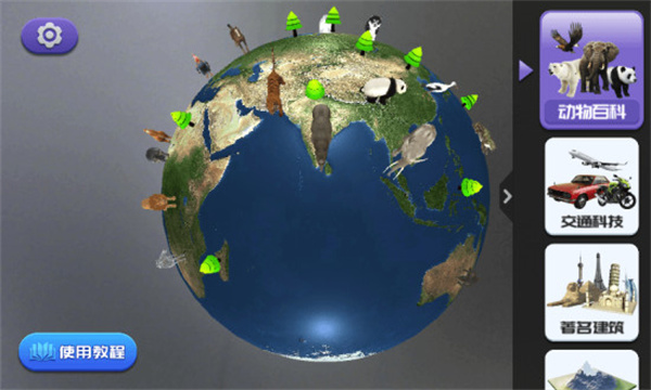 用户只需拿着手机对着地球仪扫描,即可感受立体的世界,将动物、恐龙、昆虫等等召唤出来,进行亲密互动,足不出户,即可感受古今中外,世界各地风土人情。应用还特别设计了互动游戏模式,通过趣味问答和探索任务,激发用户的学习兴趣,让知识获取变得更加轻松愉快。