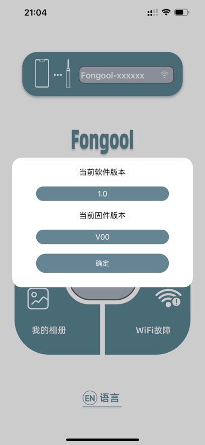 打开扫码下载好的APP,点击开始键进入WIFI设置界面,找到Fongool-xxxxxx并点击连接。第一次连接WiFi时手机可能提示"当前WLAN无法正常访问互联网,到其他WLAN可正常连接,是否切换?"请选择"保持连接"以便继续使用Fongool-xxxxxx。不同手机可能会有不同的提示信息,请根据提示选择,确保继续使用Fongool-xxxxxx热点,不要切换网络。