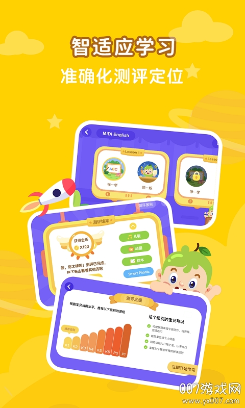 希朗AI教辅是一款专为3-9岁儿童设计的智能英语学习平台,汇聚了国内外顶尖教育专家团队,通过AI技术与真人教师相结合的方式,为孩子们打造沉浸式英语学习环境。平台采用个性化教学模式,根据每个孩子的学习进度和兴趣特点,智能匹配最适合的学习内容。在这里,孩子们不仅能系统学习英语知识,更能通过丰富的互动游戏和情景对话培养英语思维,让英语学习变得生动有趣。平台还特别注重培养孩子的听说能力,通过AI语音评测系统实时纠正发音,帮助孩子打下坚实的语言基础。