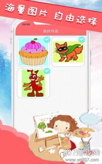 里边带有各式各样的绘画图片,随意选择,无尽。图片库按年龄和难度分级,从简单的水果到复杂的风景画应有尽有,满足不同阶段孩子的需求。所有素材均经过专业美术团队设计,保证审美品质。