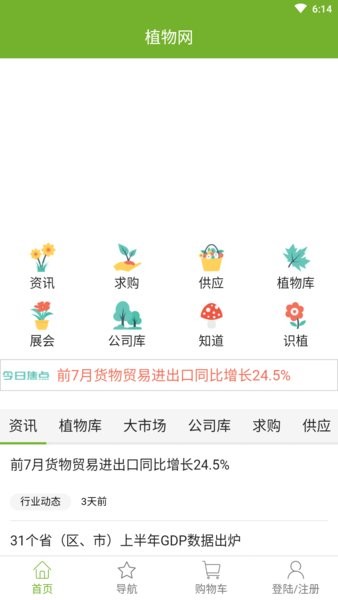 首页界面:每日更新行业热点资讯,让用户第一时间掌握植物领域的最新动态;