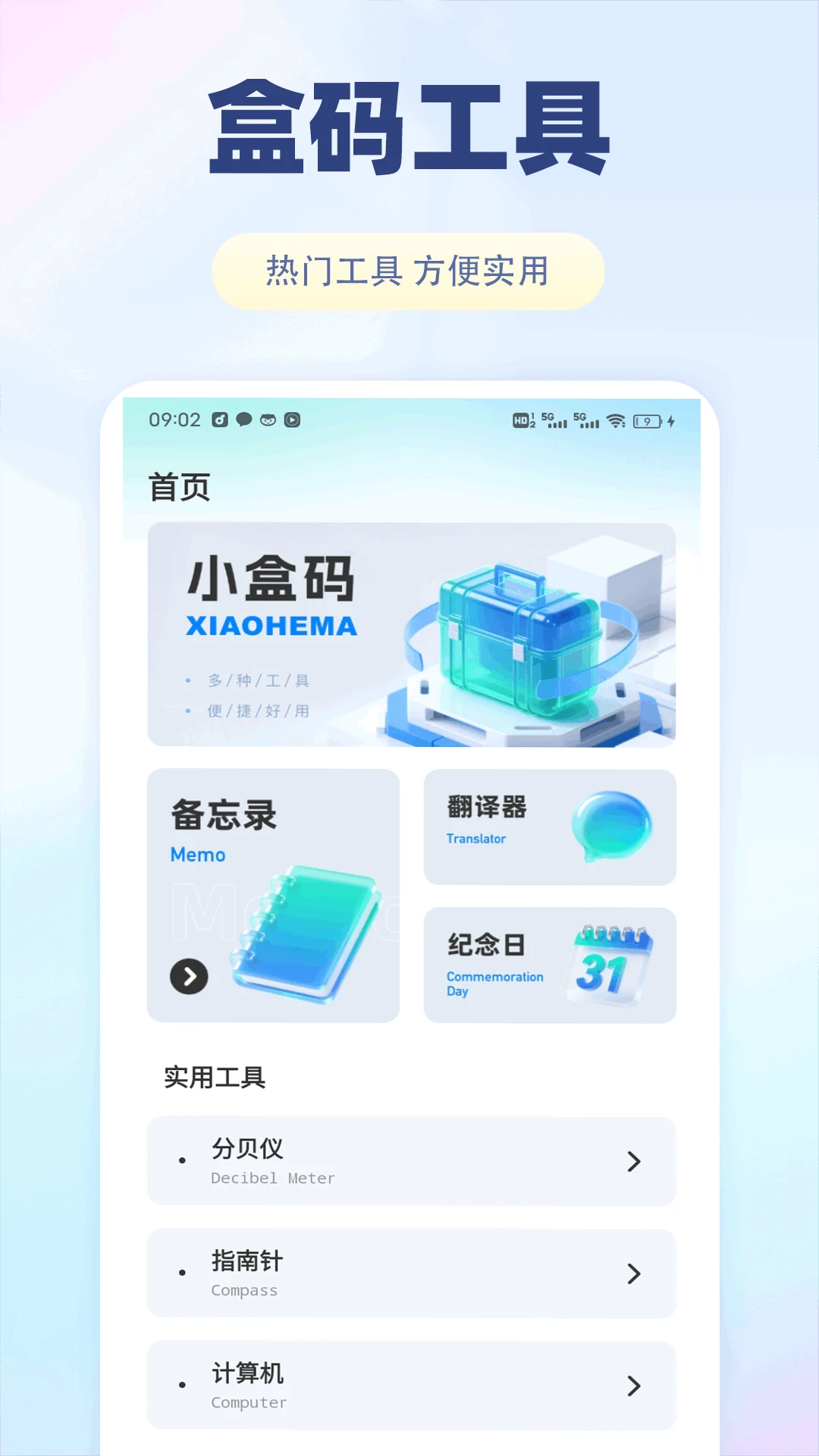 我们是一款手机工具,功能丰富实用,涵盖翻译器、备忘录、纪念日提醒、分贝仪、指南针等热门工具,满足日常多种需求。更有自然舒缓音效助你放松,精美头像壁纸随心换,是你的贴心手机助手。