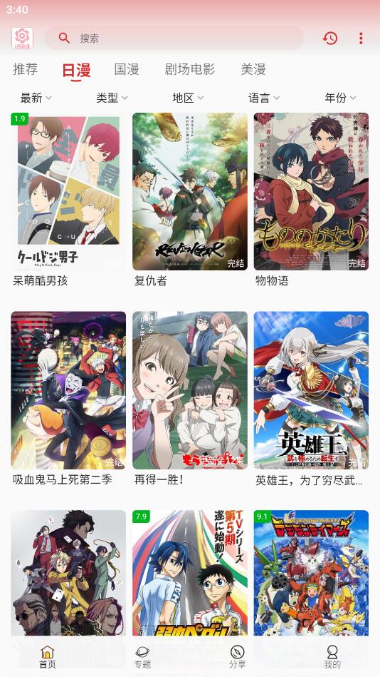 简单易用的界面:界面简洁明了,操作简单易懂,即使是新手也可以轻松上手,用户可以轻松地找到自己想要的动漫资源,同时,软件支持多种语言切换,方便不同地区的用户使用。精心设计的分类系统和标签功能,让用户能够通过多种方式快速定位到感兴趣的内容。