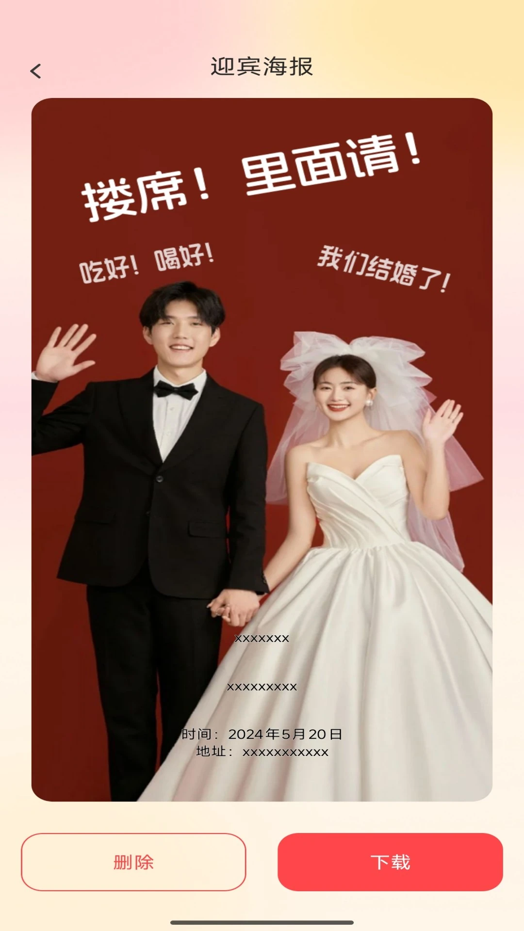 多场景海报设计:提供婚礼、寿宴等模板,支持自定义文字、图片和布局。