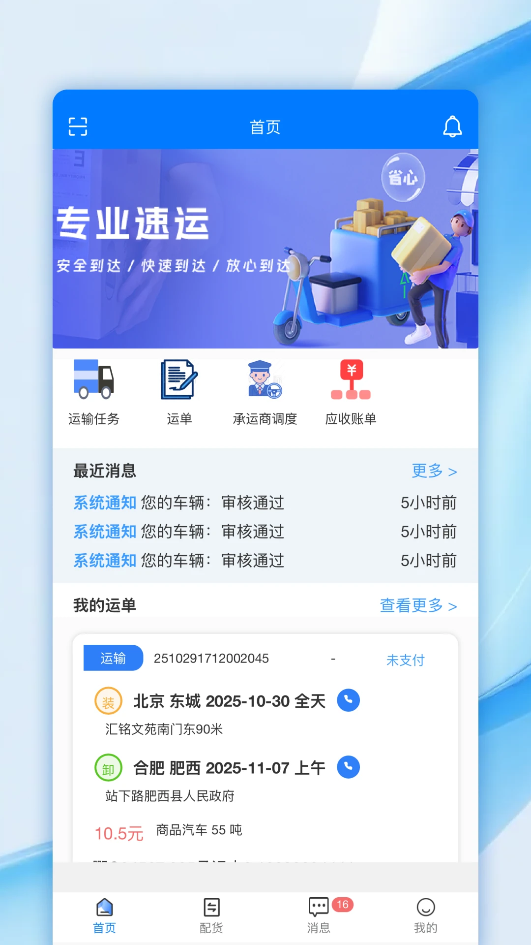 面向司机与车队的移动端接单与运输管理工具,提供全国货源智能匹配、一键接单、导航与实时轨迹、电子签收与对账结算,帮助司机高效、安全、合规地完成每一单运输。