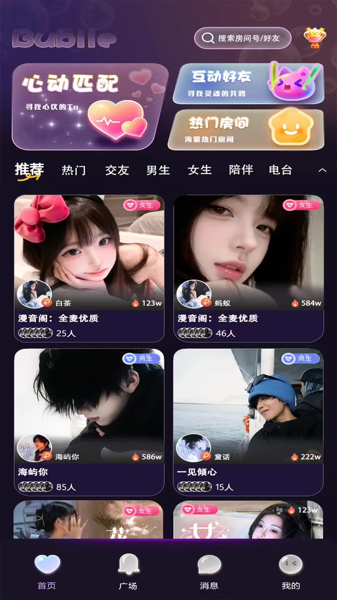 泡泡星球是一款集实时语音社交、互动娱乐、场景化陪伴功能于一体的创新型语音社交软件,整合互动娱乐玩法与场景化陪伴服务,为用户带来丰富多元的社交体验。