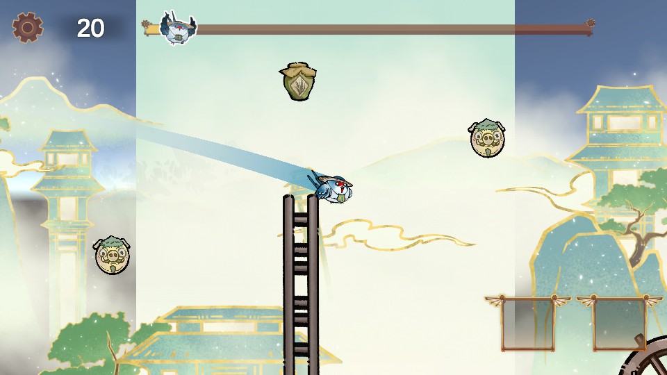 关卡内散布着各类增强道具,拾取后可以强化下一次攻击效果。这些道具包括提高飞行距离的轻功符、扩大破坏范围的爆破丸、增加弹射次数的连击丹等。道具的合理使用往往能扭转战局,建议在关键时刻善加利用。