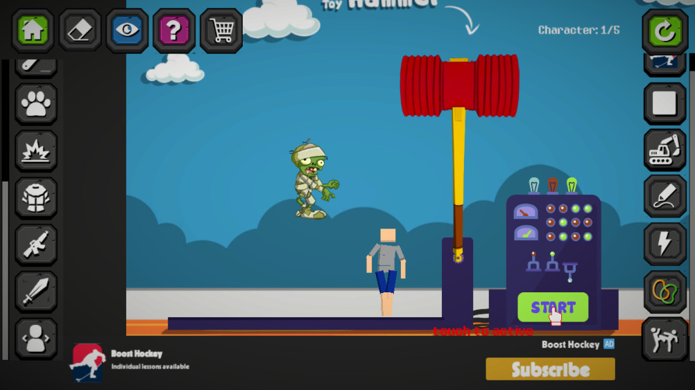 游戏开始时,首先需要从众多精心设计的场景地图中选择一张作为你的游戏舞台,点击PLAY按钮即可开始游戏。进入游戏后会自动加载新手教程,这个教程将帮助你快速掌握游戏的基本操作。按照教程指引,你可以轻松地将各种物品和人物拖动到场景中。