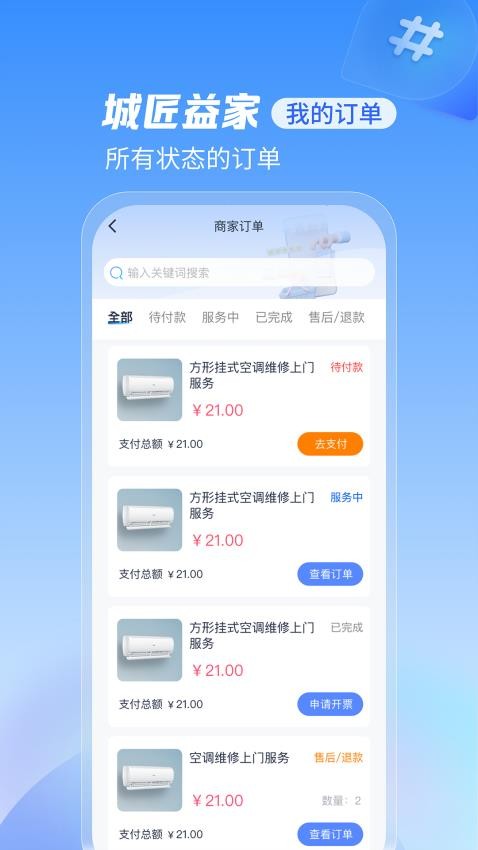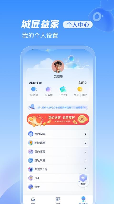 城匠益家官网版特别注重用户体验,不仅提供丰富的优惠活动,还设有完善的会员福利体系。新用户注册即可领取专属优惠券,老用户也能通过积分兑换等方式享受更多折扣。平台采用透明化收费模式,所有服务项目明码标价,杜绝隐形消费。同时,智能化的订单管理系统让您可以实时追踪维修进度,查看师傅信息,确保服务过程安全可靠。从下单到售后,城匠益家全程为您保驾护航,让家居维修变得简单又省心。