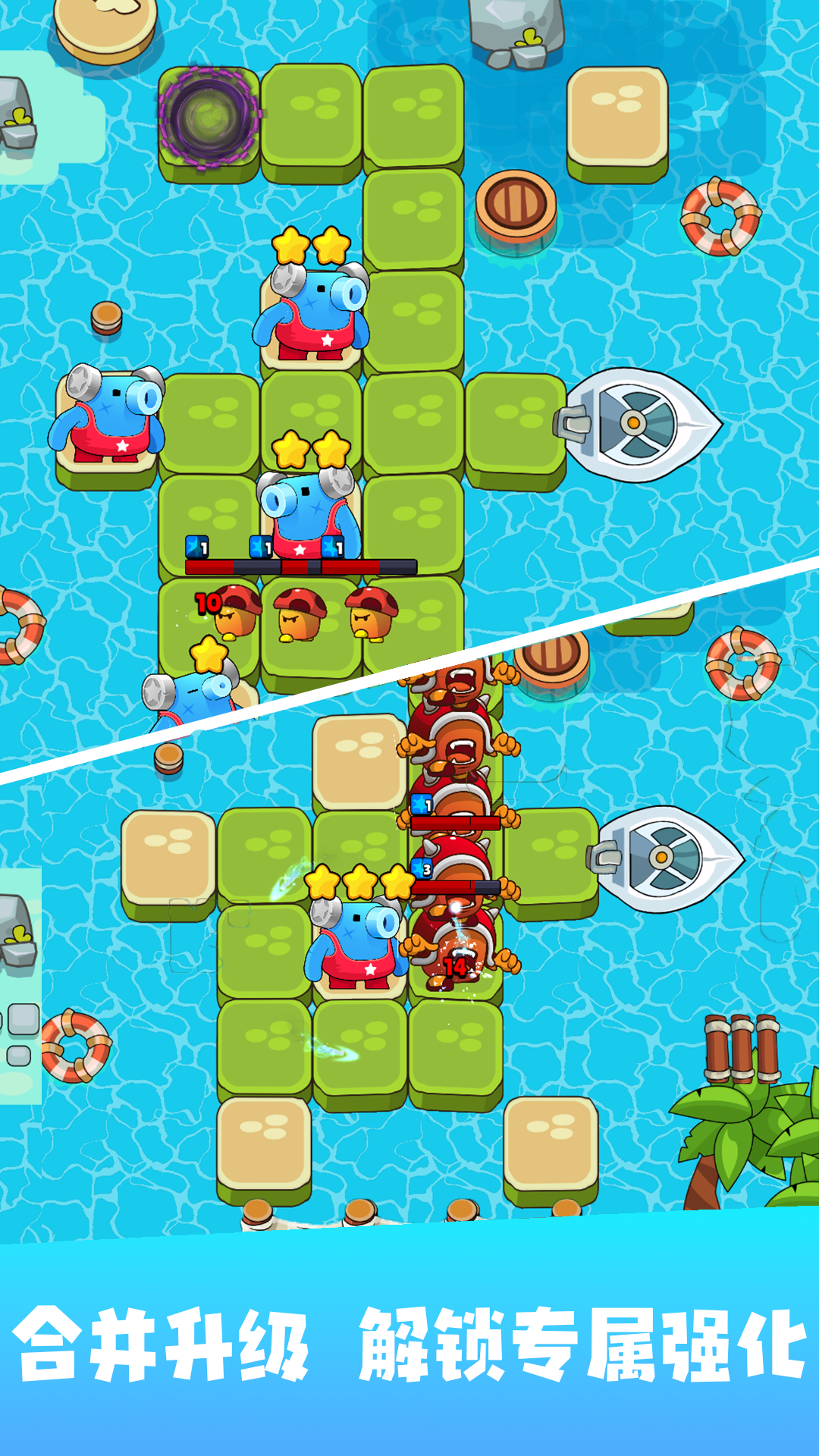 单局节奏紧凑刺激:游戏优化了传统塔防游戏前期节奏缓慢的问题,波次推进与合成操作紧密衔接,让玩家从开局就能体验到紧张刺激的战斗乐趣,不会出现无聊的等待时间。